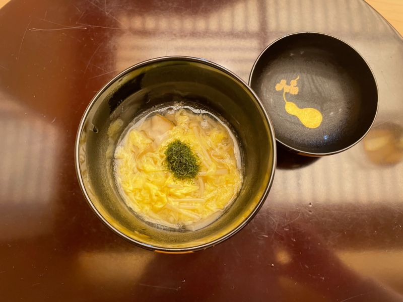 カニをふんだんに使ったしんじょう。ほぼつなぎがなくカニ自身の味を楽しむことができました。フタを開けた瞬間にフワッと柑橘の香りが。香りも料理の一つなのだと思いました。